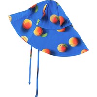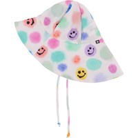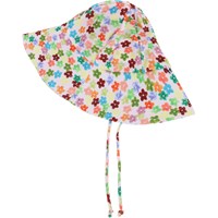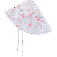 Zonnehoedje voor kleine kinderen met een print van een bloemenzee met vlinders. Het is gemaakt van 85% gerecycled polyester. De hoed heeft koordjes voor onder de kin, 50+ UV-bescherming en het is in de nek iets langer voor optimale bescherming tegen de zon.