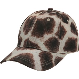 Classic baseball cap with a giraffe print. The cap has a slightly curved visor and is adjustable at the back. Size guide: 3-5 years = 52 cm, 6-8 years = 54 cm, 9-14 years = 56 cm.