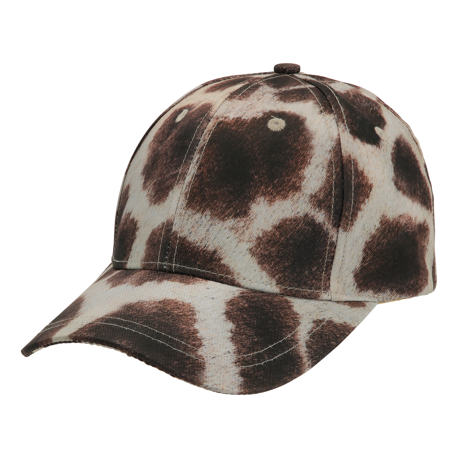 Classic baseball cap with a giraffe print. The cap has a slightly curved visor and is adjustable at the back. Size guide: 3-5 years = 52 cm, 6-8 years = 54 cm, 9-14 years = 56 cm.