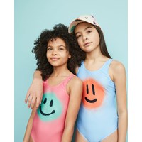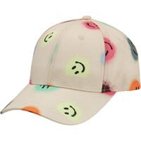Lichtgekleurde klassieke pet met een print van verschillende gekleurde smiley’s. De pet heeft een licht gebogen klep en kan worden versteld aan de achterkant. Maten: 3-5 jaar = 52 cm, 6-8 jaar = 54 cm, 9-14 jaar = 56 cm