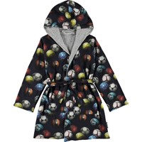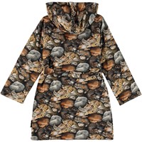Wave is een zachte badjas met een print van dieren in hun winterslaap. Het is gevoerd met een lichtgewicht en strak geweven badstof en heeft twee zakken, banden in de taille en een grote capuchon om het hoofd en de nek extra warm te houden.