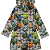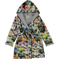 Zachte badjas met print van voetballen achter het net. De badjas is gevoerd met zachte, lichtgewicht badstof. Het heeft twee zakken, koordjes in de taille en een grote capuchon om de nek en het hoofd extra warm te houden.