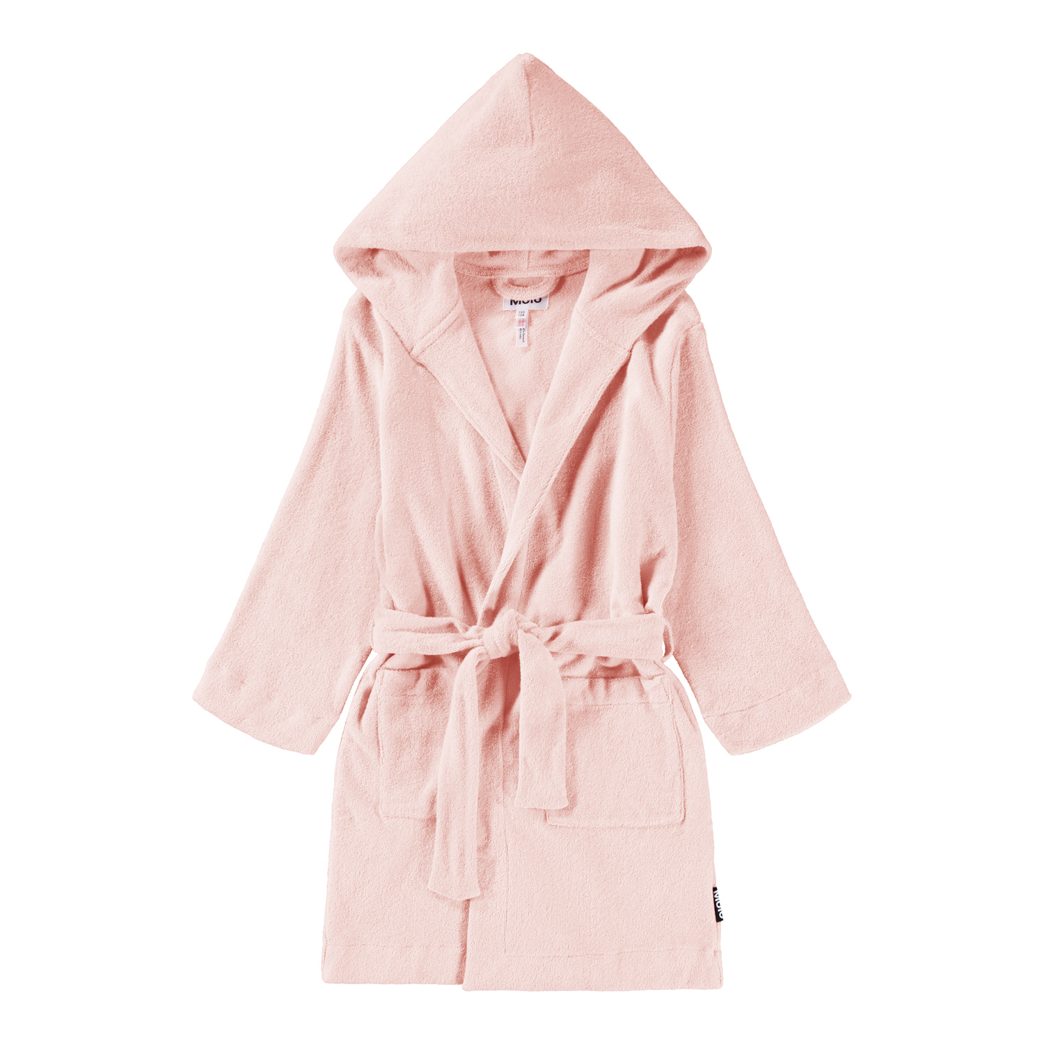 Roze badjas gemaakt van superzacht, biologisch katoenen badstof. De badjas heeft twee zakken, een strik om de taille en een capuchon.