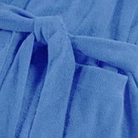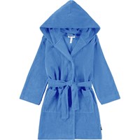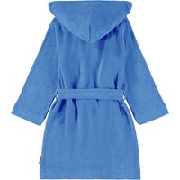 Donkerblauwe badjas gemaakt van superzacht, biologisch katoenen badstof. De badjas heeft twee zakken, een strik om de taille en een capuchon.