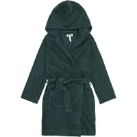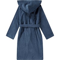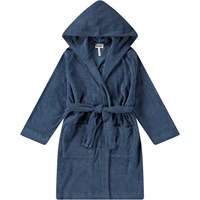 Donkerblauwe badjas gemaakt van superzacht, biologisch katoenen badstof. De badjas heeft twee zakken, een tailleband en een capuchon.