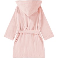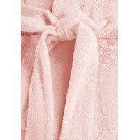 Roze badjas gemaakt van superzachte, biologische katoenen badstof. De badjas heeft twee zakken, een tailleband en een capuchon.