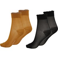 Twee paar korte sokken in bruin en honingkleur met een delicaat randje.