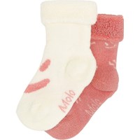 Duopak baby sokken van biologisch katoen. De sokken zijn blauw met een omslag en hebben een schattige smiley motief.