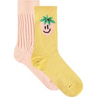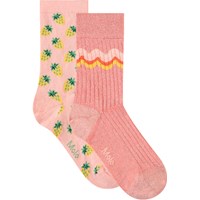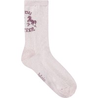 Duopak fijngebreide sokken van katoen met een geribbelde boord aan de bovenkant voor een betere pasvorm. Het duopak bevat een paar lichtpaarse sokken met glitters, een paardenprint en de tekst 'You Matter' en een paar lichtblauwe sokken met paardenprint.