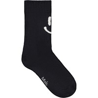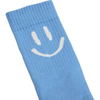 2-pack katoenen sokken. De verpakking bevat één paar zwarte en één paar blauwe sokken met glimlachen. De sokken hebben een geribbelde schacht en elastiek aan de bovenkant, en ze zijn heerlijk zacht om te dragen.