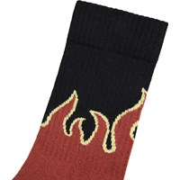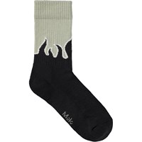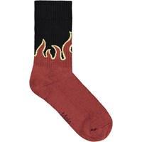 Duo pak katoenen sokken. De sokken hebben een geribbelde boord, elastiek aan de bovenkant en ze zijn lekker zacht om te dragen. Het pakket bevat een paar zwart/rood en een paar grijs-groen en zwart. Beide met een leuke vlammenprint.