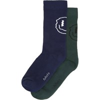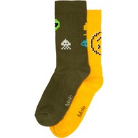 Duopak sokken van biologisch katoen. De sokken hebben geribbelde boorden en elastiek aan de bovenkant. Ze zijn heerlijk zacht om te dragen. Het pakket bevat een paar lichtroze sokken met een glimlachende emoji en een paar gebroken witte sokken met een groen yin yang motief.