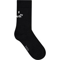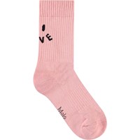 Duopak katoenen sokken. De sokken hebben geribbelde boorden en elastiek aan de bovenkant. Ze zijn heerlijk zacht om te dragen. Het duopak bevat een paar zwarte en een paar roze sokken. Beide paren hebben een smiley op de achterkant met de tekst "Future" en "Love" als mond.