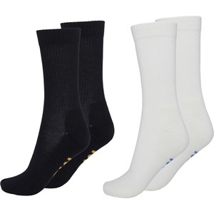Twee paar sportieve sokken van ribstof. Het ene paar is in het zwart en het andere in het wit.