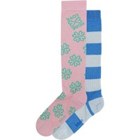 Duopak met twee paar sokken van een fijngebreide zachte katoenmix met rib aan de boord en het is elastisch aan de bovenkant. Het pak bevat een blauw paar met lichtblauwe strepen en een roze paar met een groen klaverpatroon.