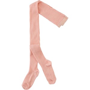 Roze fijngebreide geribbelde maillot van biologisch katoen. De elastische tailleband zorgt voor een comfortabele pasvorm.