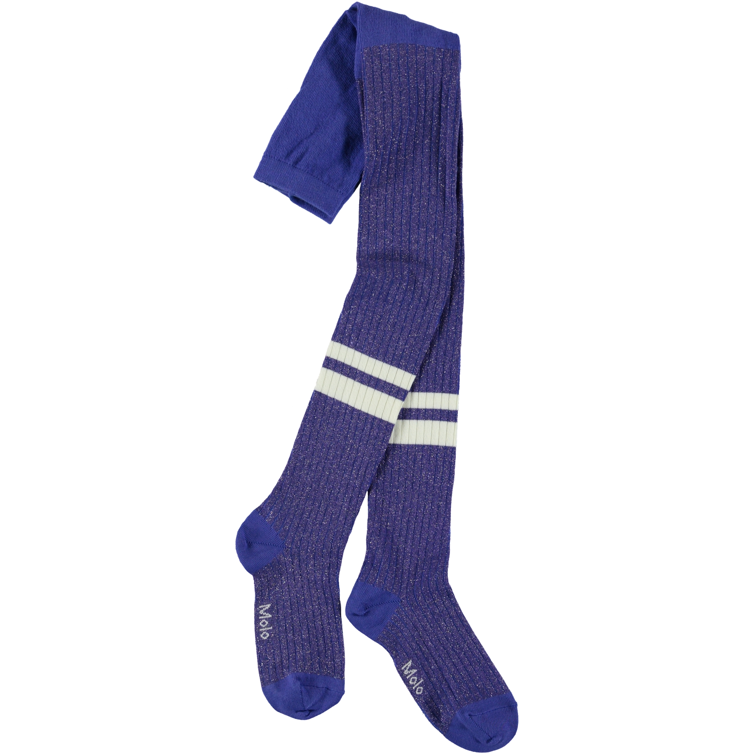 Blauwe rib maillot met sportieve witte strepen. De maillot heeft een elastische taille voor een comfortabele pasvorm.