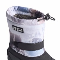 Praktische winterlaarzen met een bizonprint en met een stevige antislip zwarte zool. De laarzen hebben een verstelbare elastiek aan de bovenkant van de schacht, verstelbare klittenband rond de enkel, een binnensschoen en een goede hoogte, waardoor het geschikt is voor alle soorten weer.