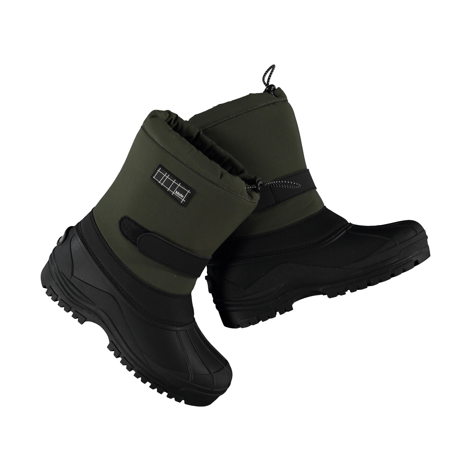 Groene winterlaarzen van functioneel polyester met verstelbare sluiting bij de schacht. Ze hebben zachte rubberen zolen die doorlopen rond de voet. Het buitenmateriaal van de laarzen is voor 59% gerecycled en gemaakt van gerecycled polyester. Zowel de zool als de schacht zijn waterdicht. De laarzen hebben een binnensok die de laarzen perfect maakt voor zowel koude als gematigde dagen. Dit product heeft een waterbestendige, PFC-vrije oppervlaktebehandelin