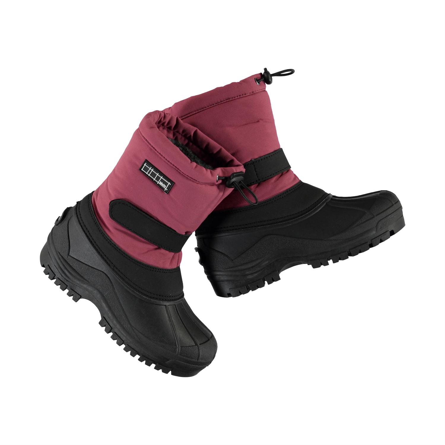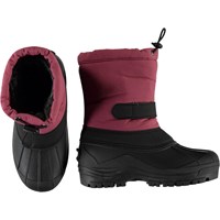 Bordeaux rode winterlaarzen in functioneel polyester met een verstelbare sluiting op de schacht en zachte rubberen zolen die doorlopen rond de voet. Zowel de zolen als de schacht zijn waterdicht. Ze hebben aan de binnenkant een verwijderbare dikke polyester sok, waardoor de laarzen perfect zijn voor warmer en kouder weer. Dit product heeft een waterbestendige, PFC-vrije oppervlaktebehandeling (bevat geen bijv. PFOS, PFOA, enz.). Waterkolomdruk: 10.000 mm. Ademend: 8.000 g / m2 / 24 uur.