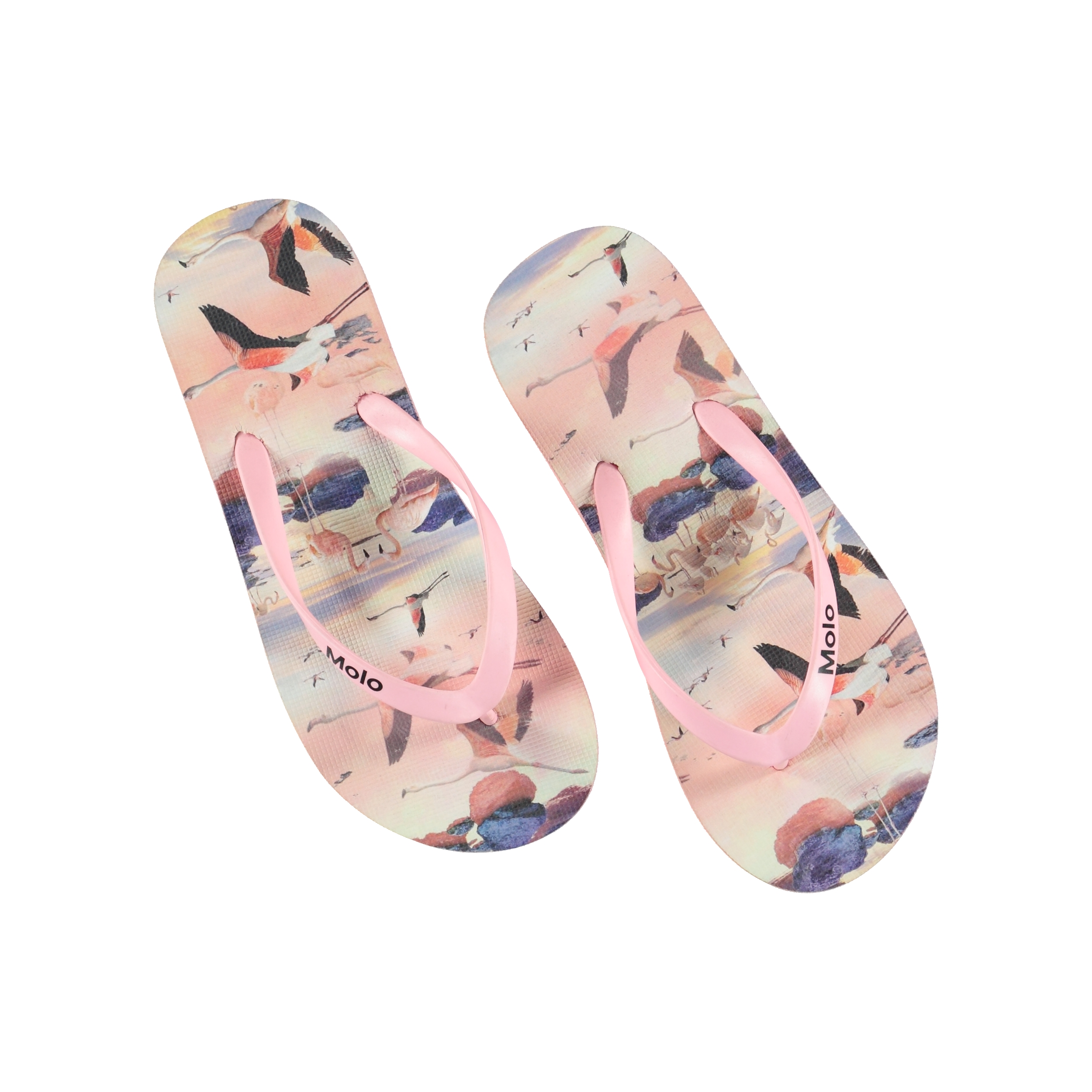 Must-have slippers met een teen split. ‘Flamingo’ staat onderaan geprint.