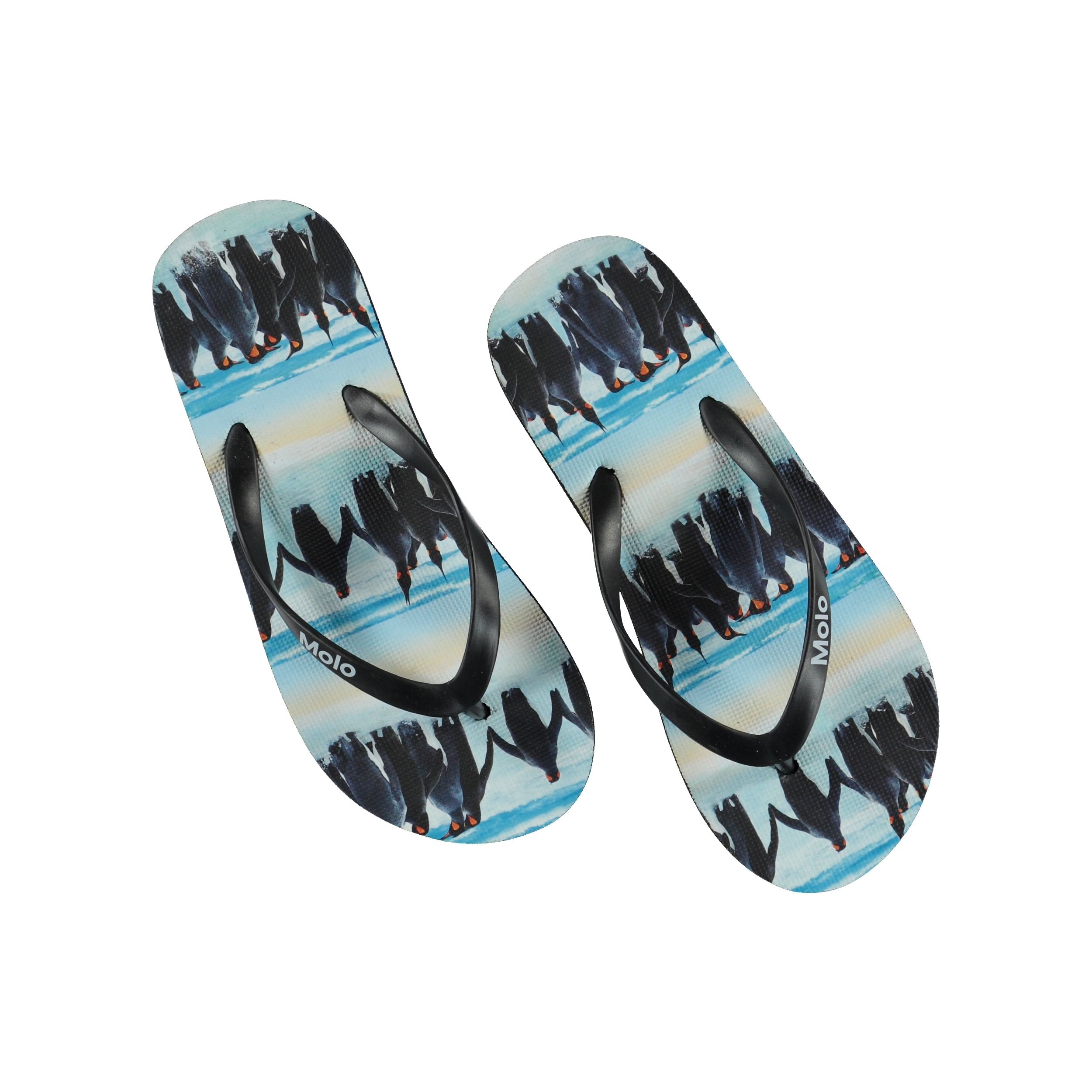 Molo's Zeppo teenslippers zijn een must om je tenen koel te houden in de zomerse hitte. Deze teenslippers hebben een pinguïnprint.