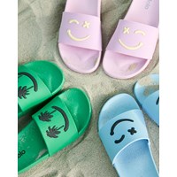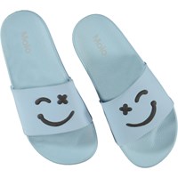 Molo’s Zhappy badslippers zijn onmisbaar in de hitte van de zomer wanneer je voeten frisse lucht nodig hebben. Deze badslippers zijn lichtblauw met zwarte smiley’s. De sandalen hebben een elastische hielband in de maten 23/24 en 25/26.