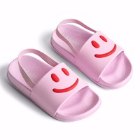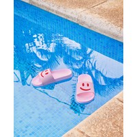 Roze badslippers met een brede voetband en voorgevormd voetbed. Deze badslippers zijn waterbestendig, waardoor het perfect is voor naar het zwembad of het strand. De voetband heeft een rode smiley. Maten 23/24 en 25/26 hebben een handige elastische hielband die zorgt voor een comfortabele pasvorm.