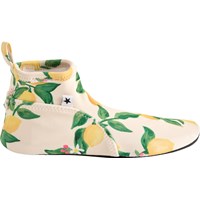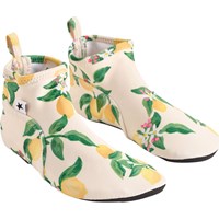 Lichtgewicht waterschoenen in geel met groene citrusprint voor de kleintjes. Gemaakt van gerecycled polyester, dat kleine voetjes beschermt tegen schelpen en kiezels tijdens het spelen in het water. Met duurzame, antislip rubberen zolen en een praktische treklus aan de achterkant, waardoor ze gemakkelijk aan en uit te trekken zijn.
