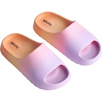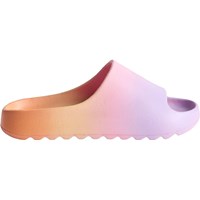 Gevormde badslippers in paars en oranje. Waterafstotend en ideaal voor zwembad en strand.