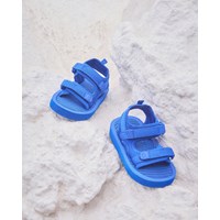 Blauwe lichtgewicht en sportieve sandalen met een zachte schuimzool, neopreen panelen en een praktische klittenbandsluiting bij de enkel en over de voorvoet, zodat de juiste pasvorm gegarandeerd is. De sandalen zijn perfect voor actieve zomerdagen zonder in te leveren op comfort.