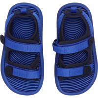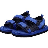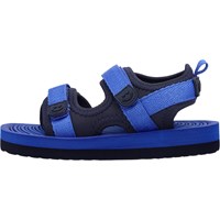 Lichtgewicht sportieve sandalen in het zwart en donkerblauw met een zachte foamzool. De sandalen zijn voorzien van comfortabele neopreenpanelen die de voet op zijn plaats houden. Ze zijn voorzien van praktische klittenbandsluitingen bij de enkels en over de voet, waardoor ze gemakkelijk aan te trekken zijn.