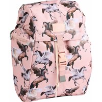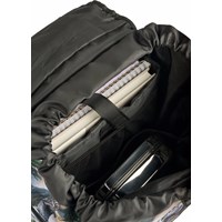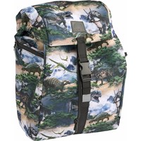 Groene/grijze schooltas met dinosaurussenlandschapprint in duurzaam polyester met een waterafstotend oppervlak. De tas heeft een verstelbare borstriem en heupgordel voor optimale gewichtsverdeling, evenals gewatteerde schouderbanden, rugpaneel en heuppads voor comfort. Hij is uitgerust met een praktische ophanglus, een stevig deksel met sluiting aan de voorkant en twee zijvakken met ritsen, waarvan één is gevoerd met thermisch isolatiemateriaal voor het opbergen van items zoals een waterfles. Het hoofdvak kan aan de bovenkant worden aangetrokken en bevat drie elastische binnenvakken voor organisatie, evenals een met schuim gevoerd vak voor extra bescherming van elektronica of boeken. De tas heeft ook reflectoren op alle externe ritsen en banden voor verhoogde zichtbaarheid in het verkeer. Afmetingen: 40 x 15 x 28. Inhoud: 20L.