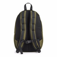 Groen sportieve rugzak met een ruim hoofdvak, een ritsvak en zwarte elastische koorden die extra opbergmogelijkheden aan de voorkant bieden. De tas beschikt over gevoerde, verstelbare riemen, waardoor hij comfortabel te dragen is, evenals een zwarte draagriem. Binnenin is hij gevoerd met zwarte stof en bevat hij een gevoerd vak dat je laptop of tablet beschermt. Daarnaast heeft hij een verstelbare heupriem, die zorgt voor een gelijkmatige gewichtsverdeling, samen met gevoerde rug- en schouderbanden. De rugzak heeft de afmetingen 28 x 21 x 40,5 cm en een volume van 21 L