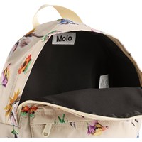 Crèmekleurige rugzak voor kinderen van 3-6 jaar met een dierenprint. Het heeft één groot vak, een voorvak met ritssluiting, een gewatteerde rug en schouderbanden, en een verstelbare borstriem voor optimaal comfort. Afmetingen: 26 × 10 × 30 cm. Inhoud: 6,5 L.