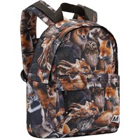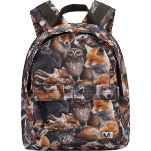 Rugzak met print van bosdieren. Het heeft een voorzak aan de buitenkant, een gesp op de borst, een handvat en verstelbare bandjes. Dit Molo-product is gerecycled en gemaakt van herbruikbaar polyester, dat is gemaakt van gebruikte plastic flessen en ander afvalmateriaal. Door de productie van herbruikbaar polyester worden er minder grondstoffen gebruikt en stoot er minder CO2 uit, waardoor Molo's rugzak de duurzame keuze is. De rugzak is 25 cm breed en 30 cm hoog.