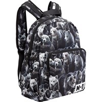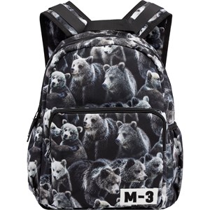 Ruime rugzak met een schattige berenprint. Het materiaal van de rugzak is gemaakt van gerecycled polyester. Het heeft een buitenste voorvak met een rits en 'M-3'-label, zakken aan beide zijden voor bijvoorbeeld een waterfles, gewatteerde rug, lus en verstelbare schouderbanden.