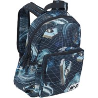 Ruime rugzak met een print van futuristische tijdmachines. Het materiaal van de rugzak is gemaakt van gerecycled polyester. Het heeft een buitenste voorvak met een rits en 'M-3'-label, zakken aan beide zijden voor bijvoorbeeld een waterfles, gevoerde achterkant, lusjes en verstelbare schouderbanden.