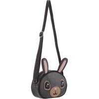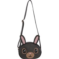 Schoudertasje in zwart met een lief motief van een konijntje op de voorkant. De tas heeft een verstelbare schouderband.