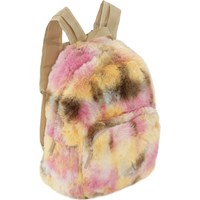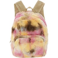 Rugzak van imitatiebont in roze en gele tinten. De rugzak heeft een groot, ruim hoofdvak, een ritsvak aan de voorkant en gewatteerde, verstelbare schouderbanden. Afmetingen: 30 x 17 x 42.