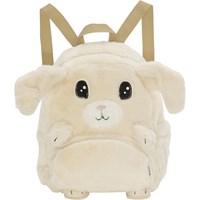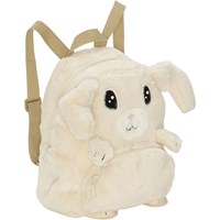 Witte konijnen rugzak van imitatiebont. Het konijn heeft lange, zachte oren en kleine pootjes. De rugzak heeft een buitenvak, een lus, verstelbare schouderbanden en een extra ritsvak aan de binnenkant. De rugzak is 25 cm breed en 30 cm hoog. Vooral voor kleine kinderen is het ideaal.