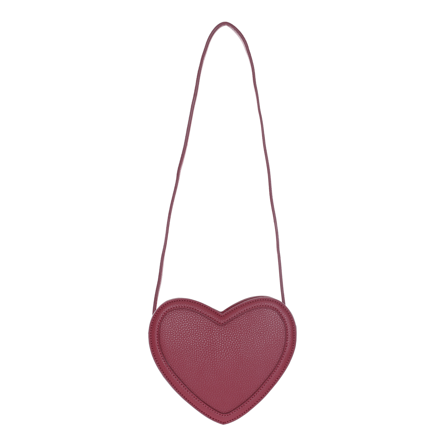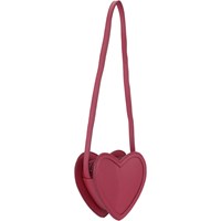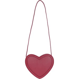 Rode hartvormige handtas. Het heeft verstelbare bandjes.