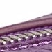 Metallic paarse handtas met ritssluiting. De tas is 25 cm breed en 13,5 cm hoog.