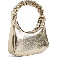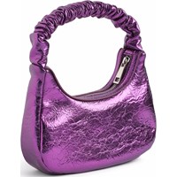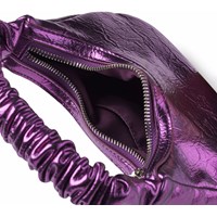 Metallic paarse handtas met ritssluiting. De tas is 25 cm breed en 13,5 cm hoog.