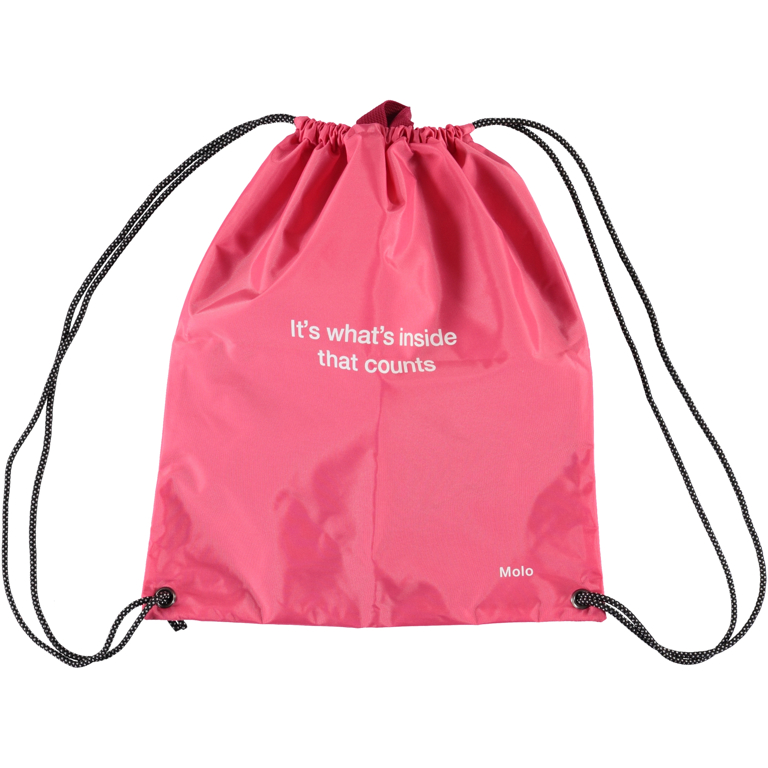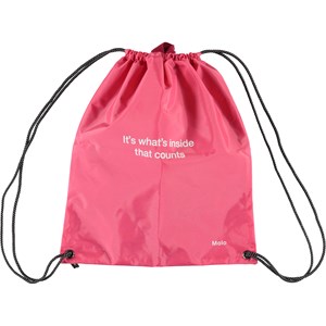 Roze gymtas met de tekst:’It’s what’s inside that counts’.