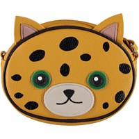 Gele schoudertas met op de voorkant een schattig luipaard motief. De tas heeft een verstelbare schouderband.