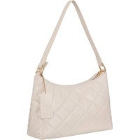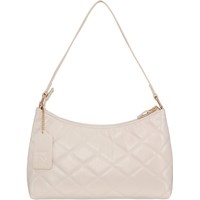 Kleine doorgestikte tas in imitatieleer met een rits, een schouderband en een klein zakje aan de binnenkant.