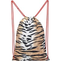 Praktische en stoere strandrugzak met rode schouderbanden en tijgerstrepen.