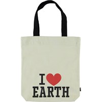 Draagtas van canvas in natuurlijke kleur met de tekst 'I love earth' op de voorkant.