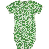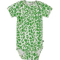 Fawl is een baby romper met korte mouwen en een groene luipaardprint waar verschillende dieren in verstopt zitten.